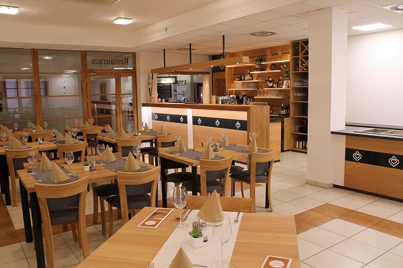 klimatizovaná moderní restaurace s kapacitou 50 míst
